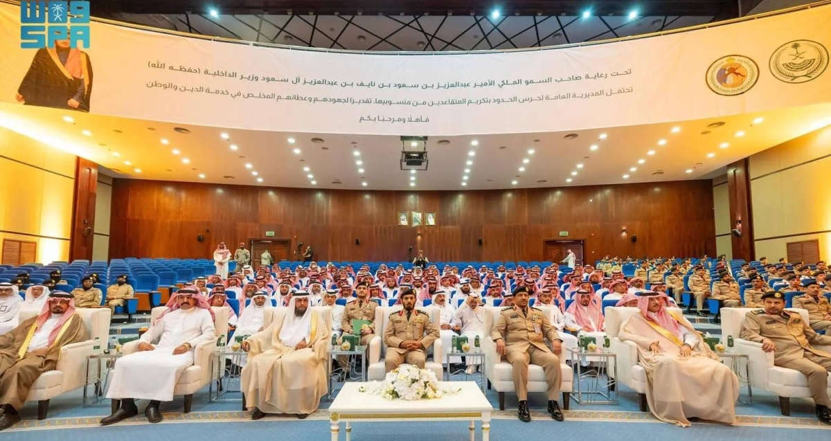 Under the patronage of the Minister of Interior, Prince Abdulaziz bin Saud bin Naif bin Abdulaziz, the Director General of the Border Guard, Major General Shaya' bin Salem Al-Wad'ani, today witnessed the honoring ceremony for the retirees from the Border Guard personnel, held at the directorate's headquarters in Riyadh.