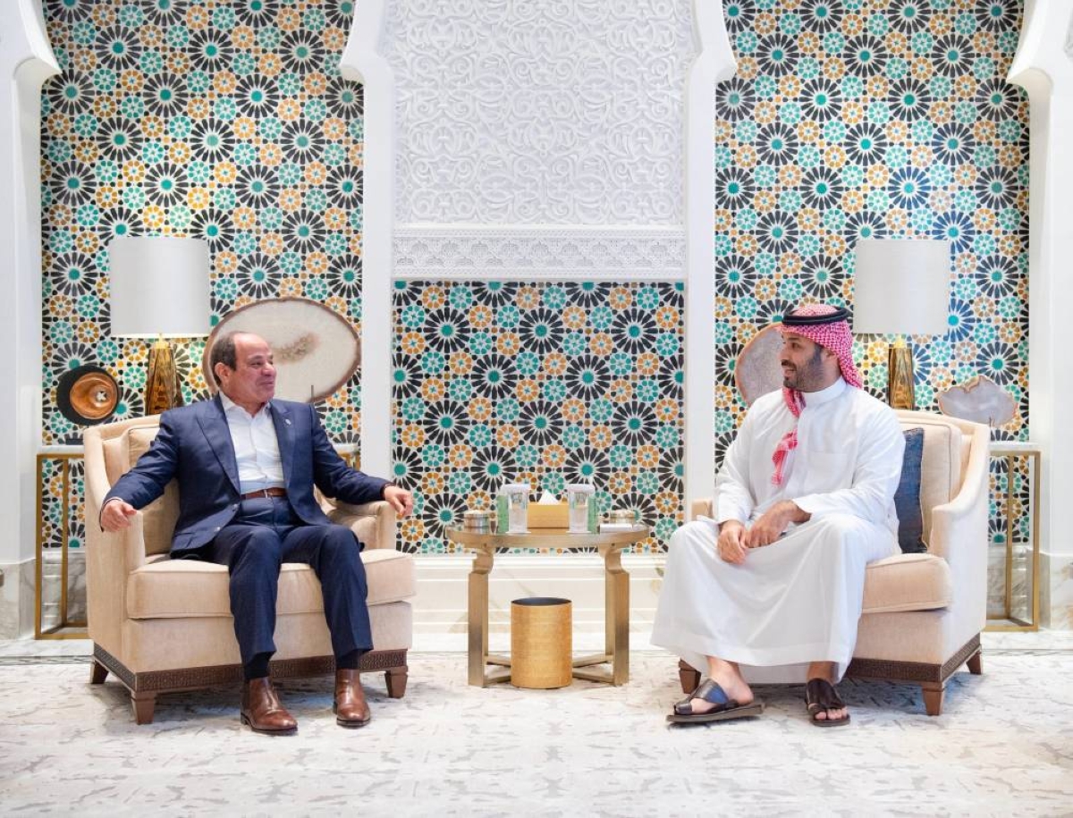 His Royal Highness, the Prime Minister, Prince Mohammed bin Salman bin Abdulaziz Al Saud, received the President of the Arab Republic of Egypt, President Abdel Fattah El-Sisi, at Neom Palace today.