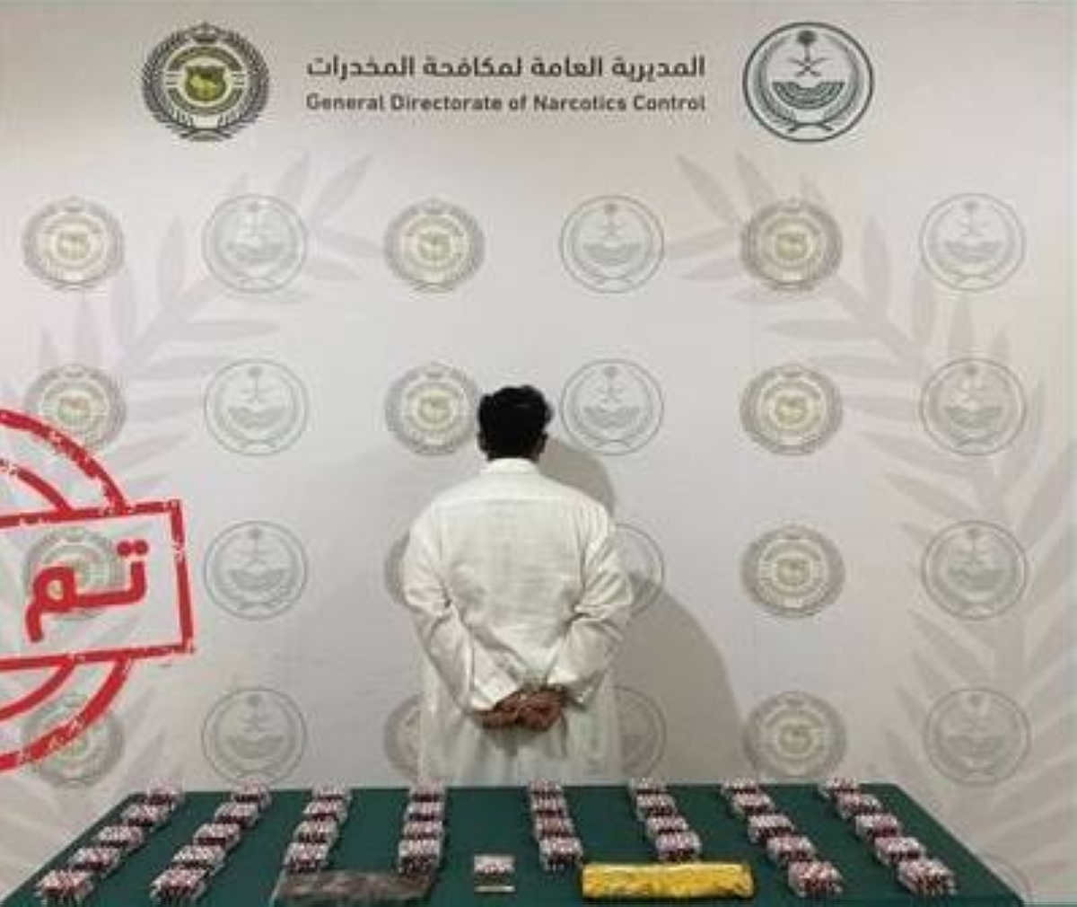 The General Directorate for Drug Control arrested a citizen in the Asir region for promoting (2.8) kilograms of hashish and (3,222) pills subject to medical trading regulations. He was detained, and legal procedures were taken against him, and he was referred to the Public Prosecution.