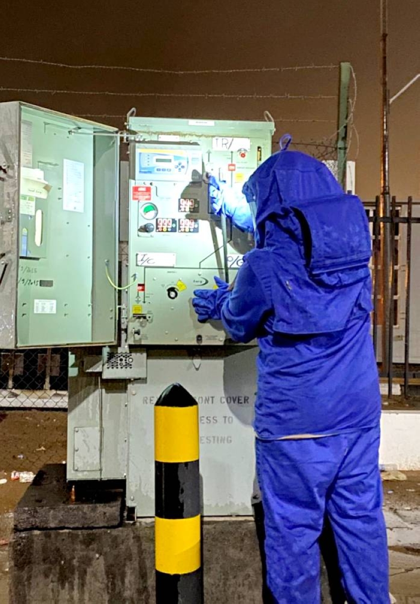 فني شركة الكهرباء يتأكد من جاهزية شبكة التوزيع. (الكهرباء)
