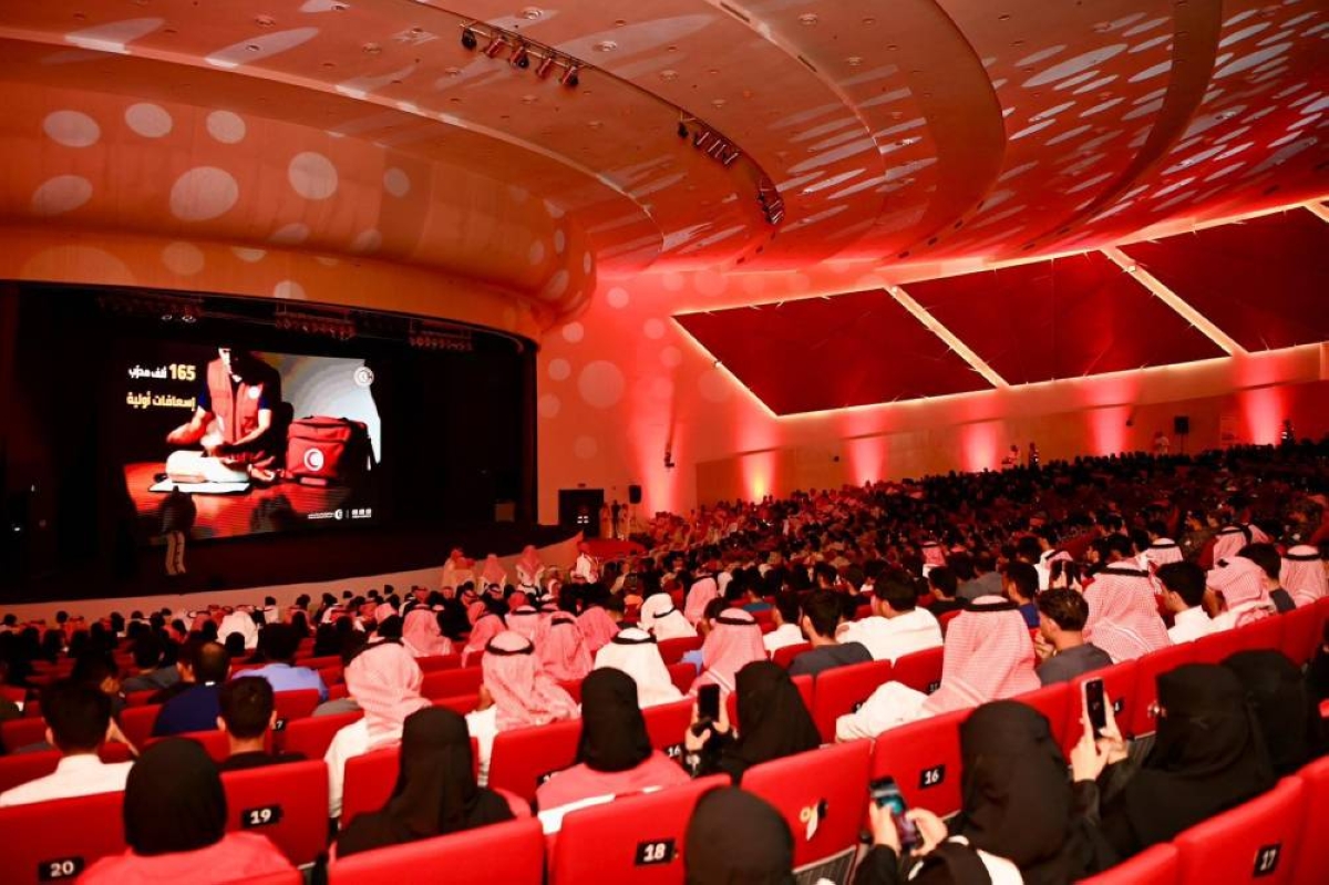 The Prince of Jazan Region, Prince Mohammed bin Abdulaziz bin Mohammed bin Abdulaziz, today sponsored the event of the Saudi Red Crescent Authority branch in the Jazan Region, on the occasion of World First Aid Day, and the region achieving a Guinness World Record for the largest attendance of trainees in World First Aid Day, at the Prince Sultan Cultural Center in the city of Jizan.