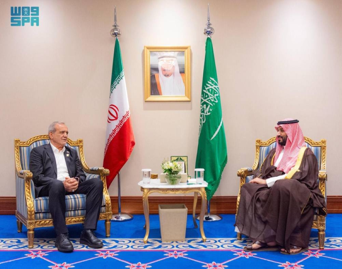 والتقى ولي العهد رئيس مجلس الوزراء الأمير محمد بن سلمان رئيس الجمهورية الإسلامية الإيرانية الرئيس الدكتور مسعود بزشکيان والوفد المرافق له، وجرى خلال اللقاء، استعراض أوجه العلاقات بين البلدين، إلى جانب بحث تطورات الأوضاع الراهنة في المنطقة، والجهود الكفيلة بتعزيز الأمن والاستقرار فيها.