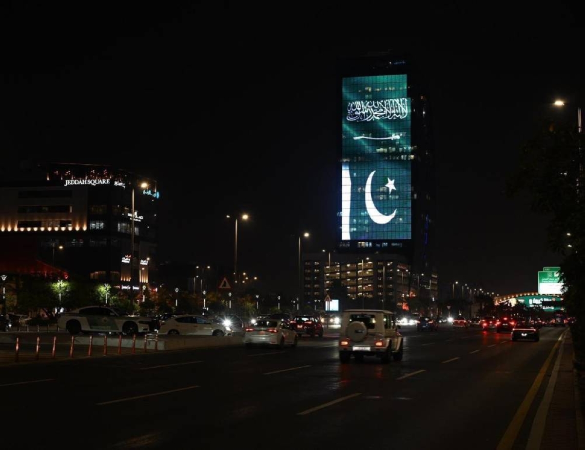 The prominent towers in the cities of the Kingdom were adorned with the flags of Saudi Arabia and Pakistan, in celebration of the signing of the "Joint Strategic Defense Agreement" on the sidelines of the visit of the Prime Minister of the Islamic Republic of Pakistan, Muhammad Shahbaz Sharif, to the Kingdom last night (Wednesday). The most notable landmarks in several regions of the Kingdom were illuminated in the colors of the flags of Saudi Arabia and Pakistan, in a scene that accompanied the expressions of public joy at the signing of the agreement.