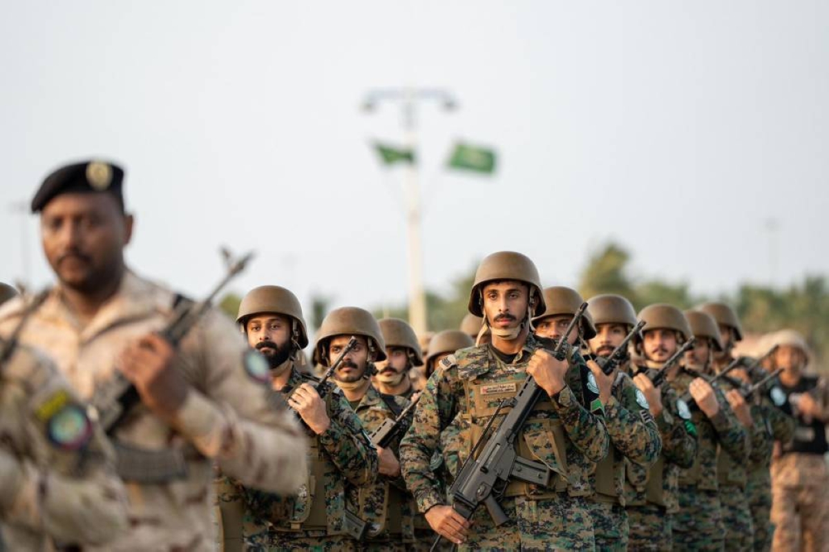 The Emir of the Jazan region, Prince Mohammed bin Abdulaziz bin Mohammed bin Abdulaziz, and his deputy, Prince Nasser bin Mohammed bin Abdullah bin Jiluwi, witnessed the aerial displays in the sky over the waterfront of Jizan city, as well as the military parade of the security sectors in the region, as part of the region's celebrations for the 95th National Day of the Kingdom.
