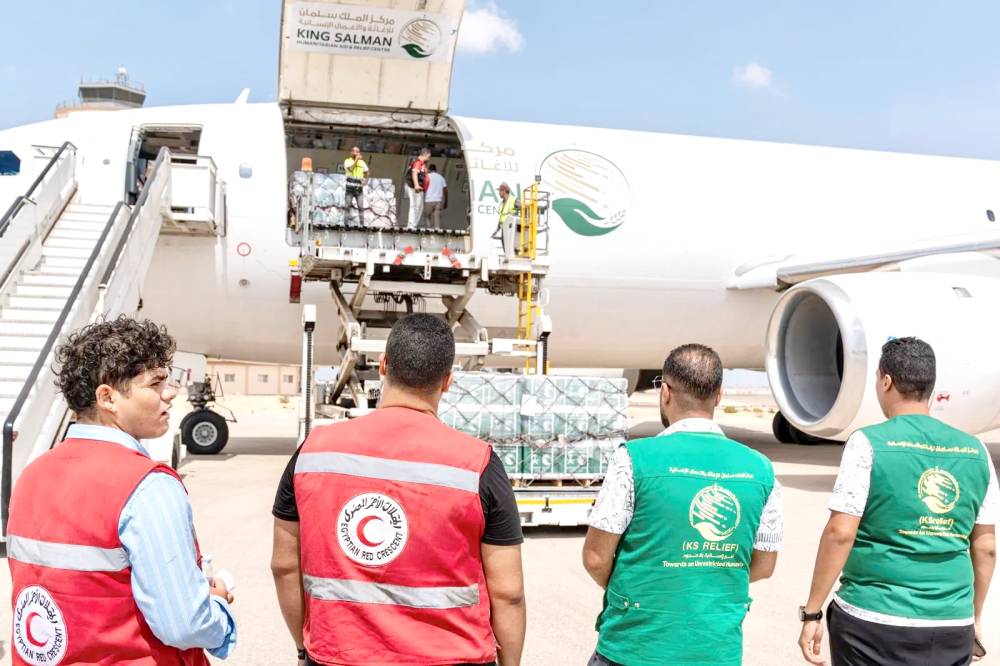 The 65th Saudi relief plane, operated by the King Salman Humanitarian Aid and Relief Center in coordination with the Embassy of the Kingdom of Saudi Arabia in Cairo, arrived at Al-Arish International Airport in the Arab Republic of Egypt yesterday (Wednesday), carrying food baskets, in preparation for their transfer to the affected people of the brotherly Palestinian people inside the Gaza Strip.