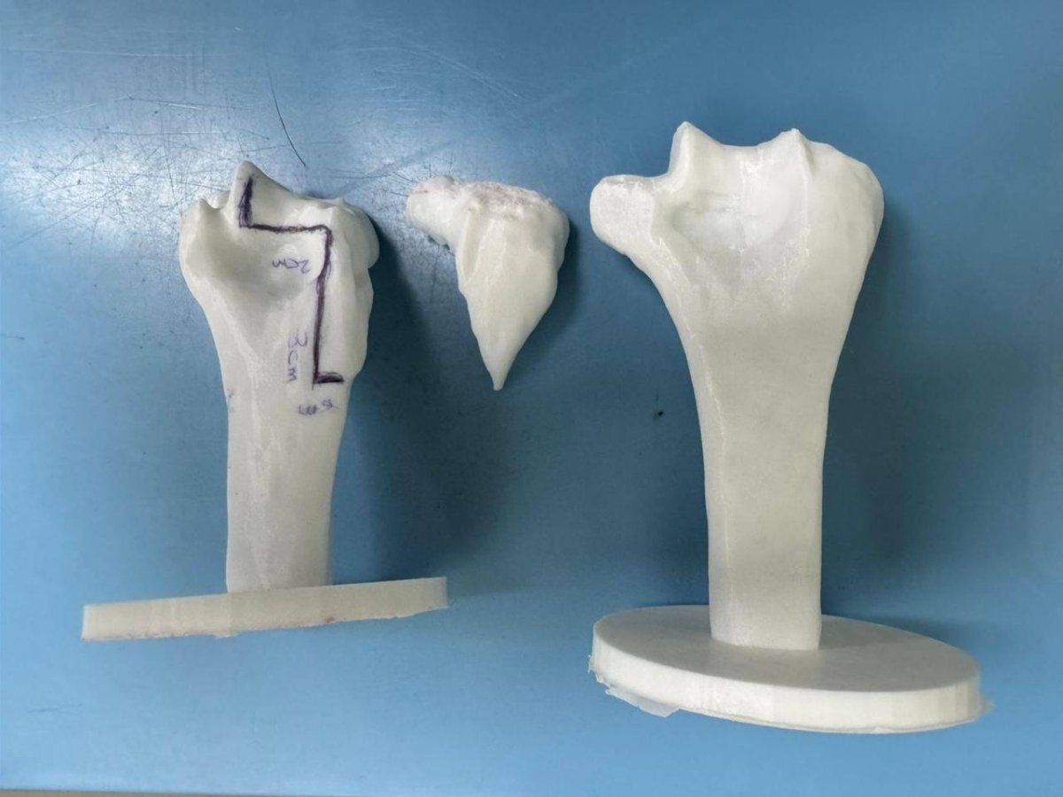 قاد الفريق الطبي للعملية الدكتور سعد القحطاني -رئيس قسم العظام استشاري جراحة العظام والأطراف العلوية- إذ أوضح أن الفريق تعامل مع الحالة منذ بدايتها بشكل دقيق، بدءا من فحص المريض في العيادة وإجراء الفحوصات المخبرية والأشعة، وصولا إلى التعاون مع الدكتور محمد بارجاء من قسم الهندسة الطبية الحيوية للاستعانة بتقنية الطباعة ثلاثية الأبعاد في تحديد حجم الجزء المفقود من المفصل بدقة عالية.