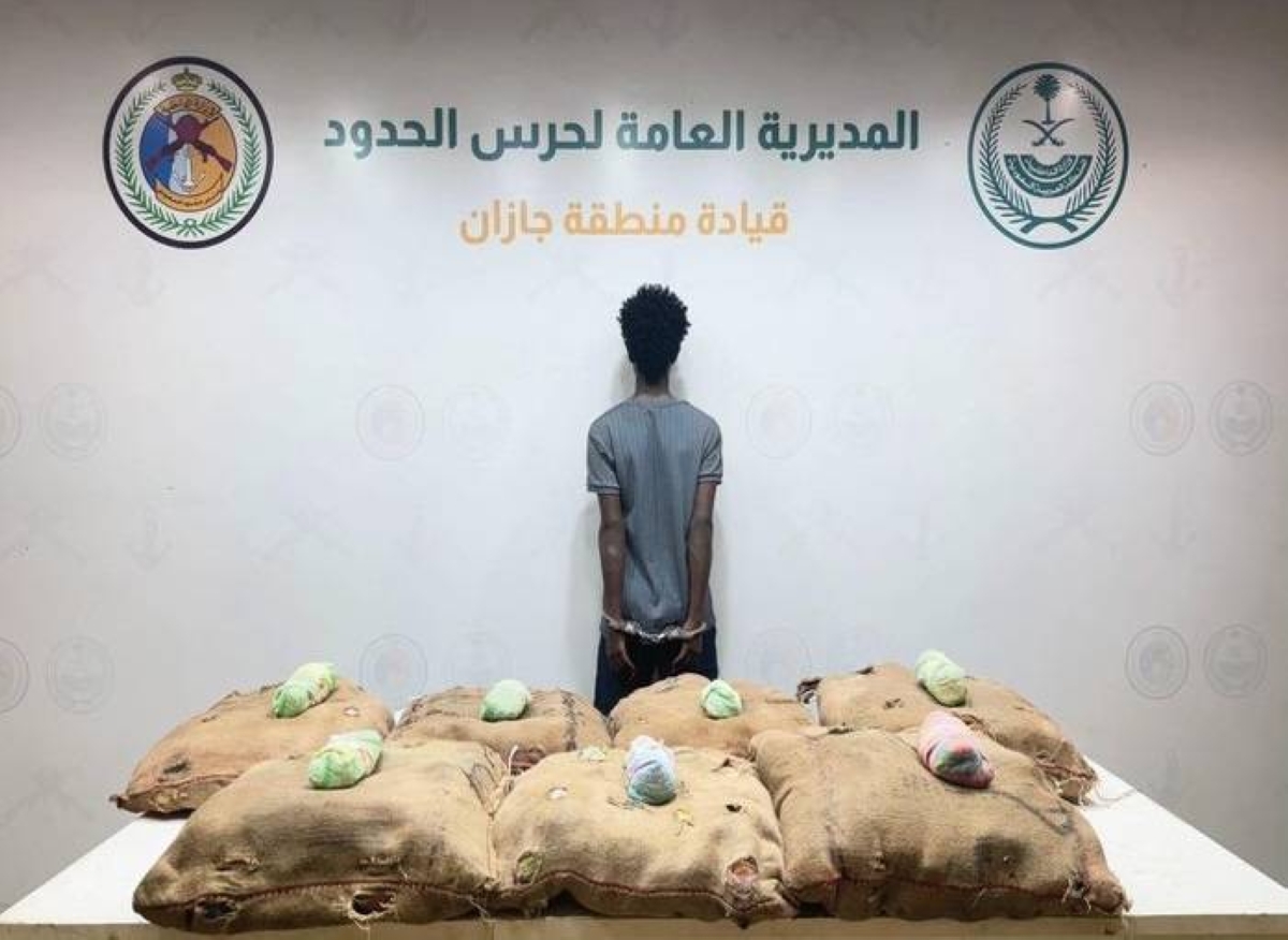 The border patrols of the Border Guard in the Al-Dayer sector of the Jazan region arrested an Ethiopian national for violating border security laws, for smuggling (140) kilograms of the narcotic plant khat. The initial legal procedures against him were completed, and he, along with the seized items, was handed over to the relevant authorities.