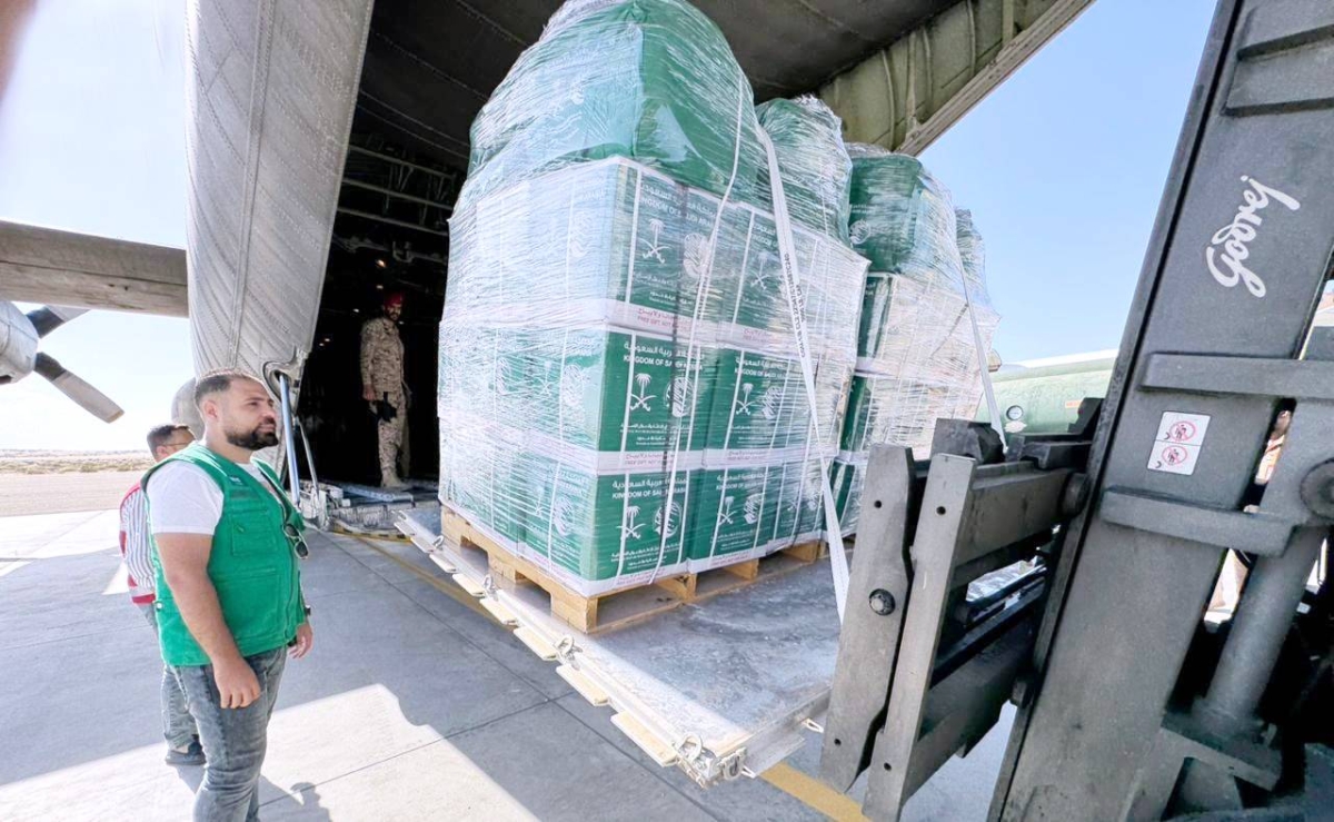 Two Saudi relief aircraft, 66 and 67, arrived yesterday at Al-Arish International Airport in the Arab Republic of Egypt, operated by the King Salman Center for Relief and Humanitarian Works in coordination with the Ministry of Defense and the Embassy of the Kingdom of Saudi Arabia in Cairo. They are carrying food baskets and shelter bags, preparing for their transfer to the affected people of the brotherly Palestinian people inside the Gaza Strip. This assistance comes as part of the Saudi support provided through the King Salman Center for Relief to the brotherly Palestinian people in the Gaza Strip to alleviate the severe famine and difficult living conditions that the region is suffering from.