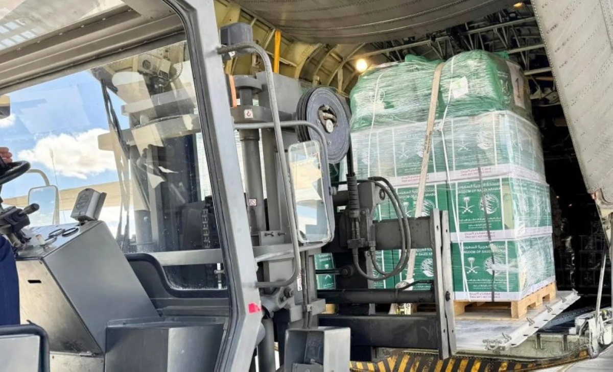 The Saudi relief aircraft (68) arrived today (Tuesday) at Al-Arish International Airport in the Arab Republic of Egypt, operated by the King Salman Humanitarian Aid and Relief Center in coordination with the Ministry of Defense and the Embassy of the Kingdom of Saudi Arabia in Cairo, carrying food baskets and shelter bags, in preparation for their transfer to the affected people of the brotherly Palestinian people inside the Gaza Strip.