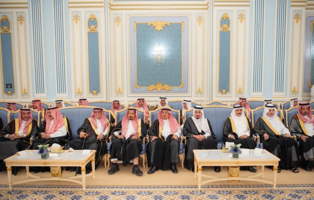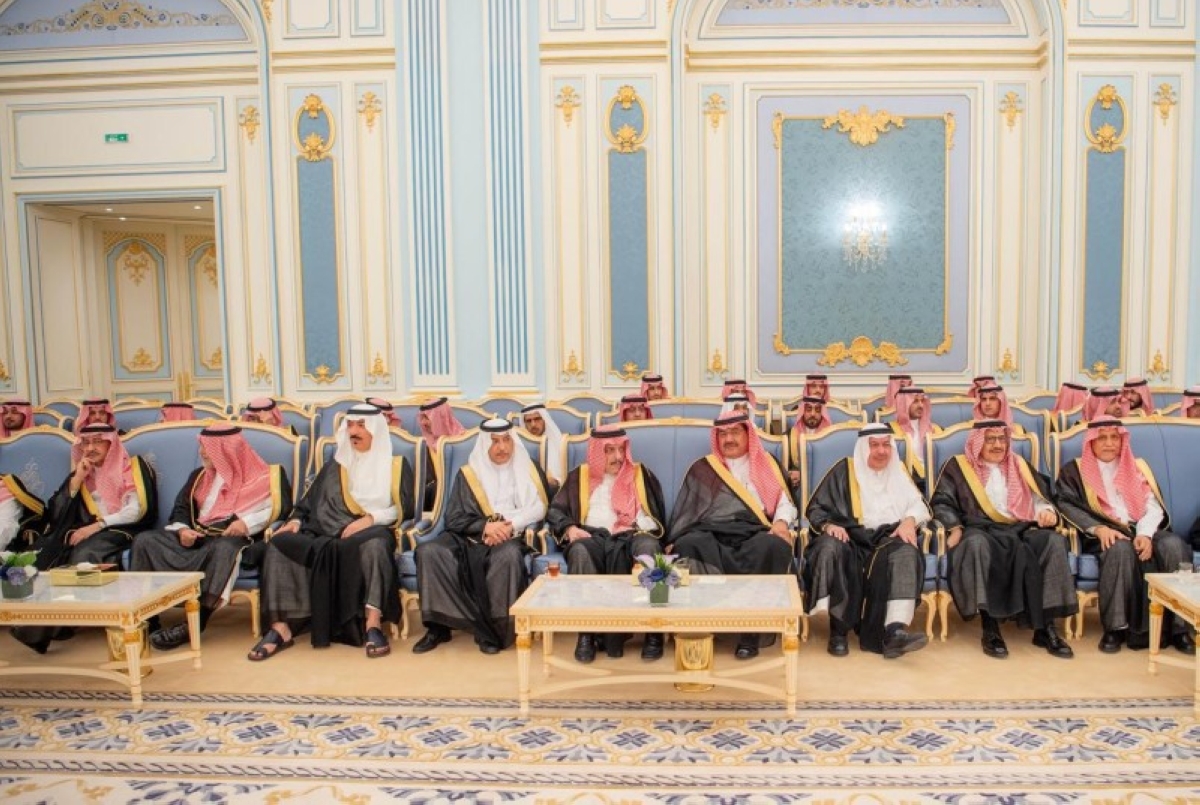 Among those present were Prince Turki bin Faisal bin Abdulaziz, Prince Faisal bin Bandar bin Abdulaziz, Governor of the Riyadh Region, Prince Saud bin Saad bin Abdulaziz, Prince Khalid bin Saad bin Abdulaziz, Prince Khalid bin Musaad bin Abdulrahman, Prince Mohammed bin Mishari bin Abdulaziz, and the advisor to the Custodian of the Two Holy Mosques, Prince Khalid bin Bandar bin Abdulaziz, Prince Dr. Mansour bin Mutaib bin Abdulaziz, Minister of State and Member of the Council of Ministers, Advisor to the Custodian of the Two Holy Mosques, Prince Mutaib bin Abdullah bin Abdulaziz, Prince Turki bin Fahd bin Mishari bin Saud bin Jiluwi, Prince Dr. Faisal bin Mohammed bin Saud bin Abdulaziz, Prince Abdulaziz bin Mohammed bin Abdulaziz, Prince Dr. Bandar bin Abdullah bin Turki bin Abdulaziz, Prince Alwaleed bin Talal bin Abdulaziz, Prince Abdulaziz bin Fahd bin Saad I bin Abdulrahman, Prince Nawaf bin Mohammed bin Abdullah bin Abdulrahman, Prince Dr. Khalid bin Abdullah bin Muqrin bin Mishari, Prince Dr. Mishaal bin Abdullah bin Abdulaziz bin Musaad bin Jiluwi, Prince Dr. Turki bin Saud bin Mohammed bin Abdulaziz, Prince Ahmed bin Abdullah bin Abdulrahman, Prince Yusuf bin Musaad bin Abdulaziz, Prince Khalid bin Faisal bin Turki bin Abdullah, Prince Bandar bin Saud bin Mohammed bin Abdulaziz, Prince Abdulaziz bin Salman bin Abdulaziz, Minister of Energy, Prince Abdulaziz bin Majid bin Abdulaziz, Prince Abdulaziz bin Bandar bin Abdulaziz, Prince Abdulaziz bin Ahmed bin Abdulaziz, Prince Mansour bin Nasser bin Abdulaziz, Prince Alwaleed bin Badr bin Saud bin Abdulaziz, Prince Dr. Nayef bin Thunayan bin Mohammed, Prince Abdulaziz bin Abdulilah bin Abdulaziz, Prince Faisal bin Turki bin Abdulaziz, advisor at the Royal Court, Prince Abdullah bin Musaad bin Abdulaziz, Prince Turki bin Khalid bin Faisal bin Saad I bin Abdulrahman, Prince Turki bin Abdulrahman bin Abdulaziz, Prince Khalid bin Turki bin Faisal bin Turki I bin Abdulaziz, Prince Abdulaziz bin Hithloul bin Abdulaziz, Prince Faisal bin Turki bin Faisal bin Turki I bin Abdulaziz, Prince Abdulaziz bin Fahd bin Abdulaziz, Prince Fahd bin Saad bin Abdullah bin Abdulaziz bin Turki, Governor of Al-Dhahriah, Prince Nayef bin Mamdouh bin Abdulaziz, Prince Faisal bin Farhan bin Abdullah, Minister of Foreign Affairs, Prince Nayef bin Sultan bin Mohammed bin Saud Al-Kabir, Prince Saad bin Abdulrahman bin Saad II bin Abdulrahman, Prince Salman bin Faisal bin Salman bin Mohammed, Prince Abdulaziz bin Mohammed bin Saad II bin Abdulrahman, Prince Fahd bin Faisal bin Abdulaziz bin Faisal, Prince Nawaf bin Faisal bin Fahd bin Abdulaziz, Prince Sattam bin Khalid bin Nasser bin Abdulaziz, Prince Nayef bin Sultan bin Abdulaziz, Prince Abdulrahman bin Turki bin Abdulaziz, Prince Bandar bin Muqrin bin Abdulaziz, advisor at the Royal Court, Prince Turki bin Mohammed bin Fahd bin Abdulaziz, Minister of State and Member of the Council of Ministers, Prince Mohammed bin Abdulrahman bin Abdulaziz, Deputy Governor of the Riyadh Region, Prince Abdullah bin Khalid bin Bandar bin Mohammed bin Abdulaziz, Prince Mohammed bin Abdullah bin Abdulaziz, Prince Abdulaziz bin Saud bin Nayef bin Abdulaziz, Minister of Interior, Prince Mohammed bin Mansour bin Mutaib bin Abdulaziz, Prince Sultan bin Fahd bin Salman bin Abdulaziz, Prince Abdulaziz bin Talal bin Abdulaziz, Prince Saud bin Mohammed bin Saad bin Mohammed bin Saud bin Abdulrahman, Prince Khalid bin Abdulrahman bin Abdullah bin Faisal bin Abdulaziz, Prince Sultan bin Khalid bin Faisal bin Turki bin Abdullah, Prince Khalid bin Mohammed bin Fahd bin Abdulaziz, Prince Abdullah bin Bandar bin Abdulaziz, Minister of the National Guard, Prince Khalid bin Badr bin Abdulmohsen bin Abdulaziz, Prince Mohammed bin Saud bin Nayef bin Abdulaziz, Prince Sultan bin Mohammed bin Saad bin Mohammed, Prince Fahd bin Mohammed bin Saad bin Abdulaziz, Governor of Al-Kharj, Prince Saud bin Salman bin Abdulaziz, Prince Mishaal bin Sultan bin Abdulaziz, Prince Mohammed bin Abdulaziz bin Mishaal bin Abdulaziz, Prince Salman bin Sultan bin Salman bin Abdulaziz, Prince Abdulaziz bin Faisal bin Abdulmajid bin Abdulaziz, Prince Saad bin Abdullah bin Abdulaziz, Prince Mashhour bin Abdullah bin Abdulaziz, Prince Turki bin Faisal bin Abdulmajid bin Abdulaziz, Prince Saud bin Hithloul bin Abdulaziz, Prince Mohammed bin Saud bin Fahd bin Abdulaziz, Prince Turki bin Abdulaziz bin Ahmed bin Abdulaziz, Prince Abdulmajid bin Abdulilah bin Abdulaziz, Prince Sultan bin Abdullah bin Abdulaziz, Prince Mohammed bin Fahd bin Badr bin Abdulaziz, Prince Fahd bin Abdulaziz bin Mishaal bin Abdulaziz, Prince Saud bin Badr bin Abdulmohsen bin Abdulaziz, Prince Faisal bin Ahmed bin Salman bin Abdulaziz, Prince Dr. Faisal bin Abdullah bin Mohammed bin Mishari, Prince Dr. Bandar bin Abdullah bin Mohammed bin Mishari, Assistant Minister of Interior for Technical Affairs, Prince Dr. Mamdouh bin Saud bin Thunayan, Prince Dr. Abdulaziz bin Mohammed bin Ayaf, Special Advisor to the Custodian of the Two Holy Mosques, Deputy Minister of Interior, Prince Khalid bin Abdulaziz bin Mohammed bin Ayaf, Prince Abdulrahman bin Mohammed bin Ayaf, Deputy Minister of Defense, Prince Faisal bin Abdulaziz bin Mohammed bin Ayaf, Secretary of the Riyadh Region.