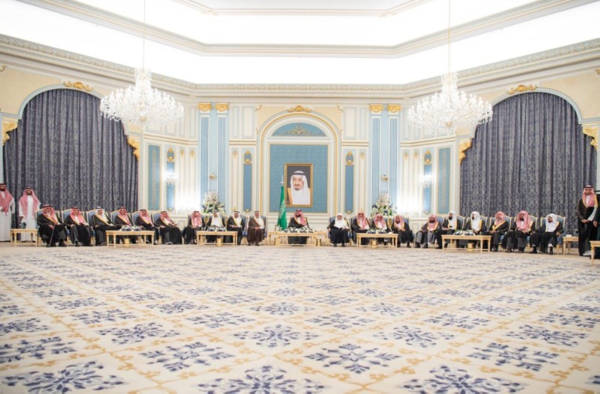 استقبل ولي العهد رئيس مجلس الوزراء الأمير محمد بن سلمان بن عبدالعزيز آل سعود، في الديوان الملكي بقصر اليمامة في الرياض، اليوم (الثلاثاء)، الأمراء، والعلماء والوزراء وجمعًا من المواطنين، الذين قدموا للسلام عليه.