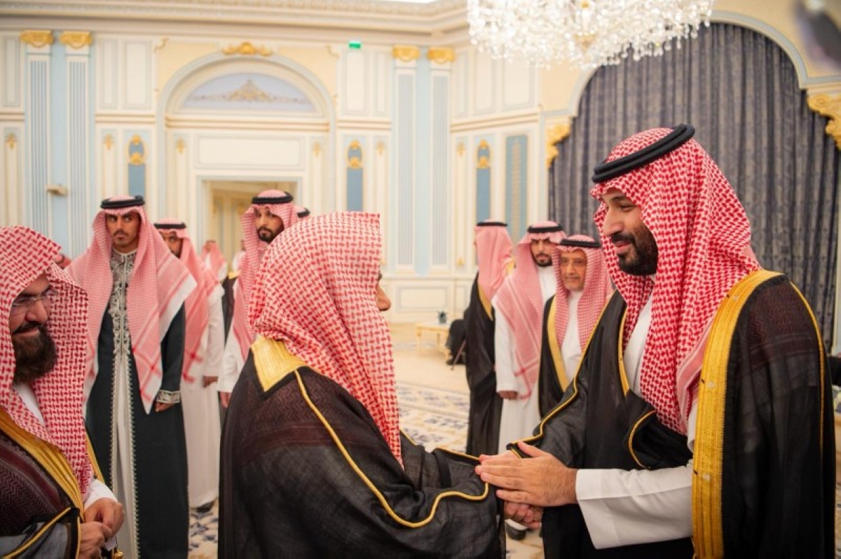 The Crown Prince and Prime Minister, Prince Mohammed bin Salman bin Abdulaziz Al Saud, received today (Tuesday) at the Royal Court in Al-Yamamah Palace in Riyadh, princes, scholars, ministers, and a group of citizens who came to greet him.