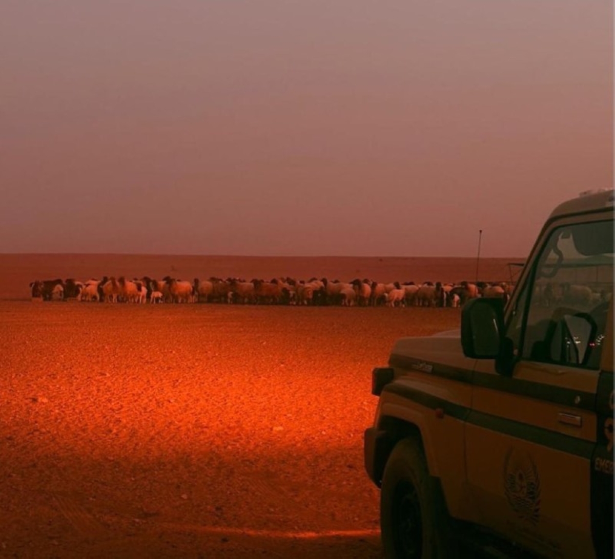 The forces confirmed that the penalty for sheep grazing is a fine of (200) riyals for each head, urging the public to report any cases that represent an infringement on the environment or wildlife by calling (911) in the regions of Makkah, Madinah, Riyadh, and the Eastern Province, and (999) and (996) in the rest of the Kingdom's regions. All reports will be treated with complete confidentiality, with no liability on the reporter.