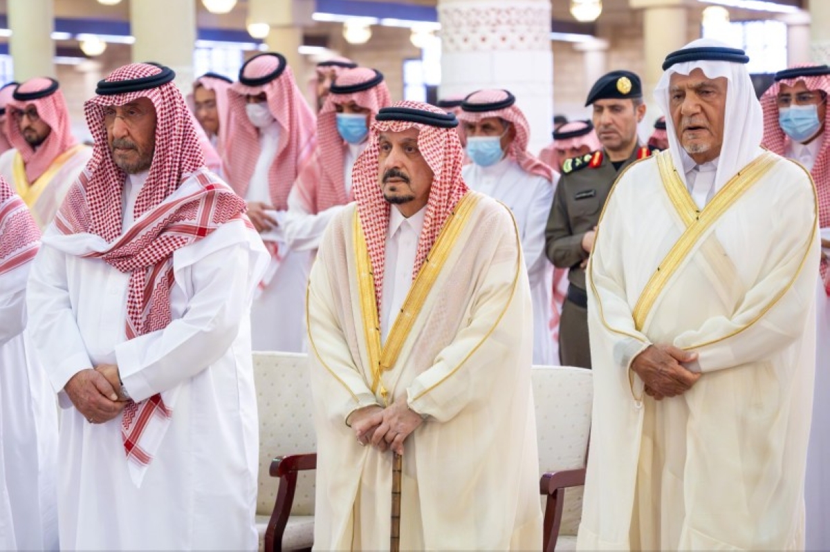 وأدى الصلاة معه، الأمير مشعل بن سعود بن عبدالعزيز، و الأمير تركي بن فيصل بن عبدالعزيز، و الأمير منصور بن سعود بن عبدالعزيز، و الأمير فهد بن عبدالله بن محمد بن عبدالرحمن، و الأمير عبدالرحمن بن سعود الكبير، و الأمير سعود بن محمد بن سعود الكبير، و الأمير خالد بن سعد بن عبدالعزيز، و الأمير خالد بن بندر بن عبدالعزيز مستشار خادم الحرمين الشريفين، و الأمير تركي بن محمد بن عبدالله، و الأمير بندر بن سعود بن محمد، و الأمير سطام بن سعود بن عبدالعزيز، و الأمير مشاري بن سعود بن عبدالعزيز، و الأمير حمود بن سعود بن عبدالعزيز، و الأمير سيف الإسلام بن سعود بن عبدالعزيز، و الأمير المعتصم بن سعود بن عبدالعزيز، و الأمير الدكتور فيصل بن مشعل بن سعود بن عبدالعزيز أمير منطقة القصيم، و الفريق الركن تركي بن بندر بن عبدالعزيز قائد القوات الجوية، و الأمير سعود بن نهار بن سعود بن عبدالعزيز محافظ الطائف، و الأمير محمد بن سعد بن خالد، و الأمير فيصل بن تركي بن عبدالعزيز، و الأمير عبدالعزيز بن محمد بن سعود الكبير، و الأمير محمد بن فيصل بن بندر بن عبدالعزيز، و الأمير تركي بن فهد بن سعود الكبير، و الأمير محمد بن فهد بن سعود الكبير، و الأمير عبدالعزيز بن فهد بن سعود الكبير، و الأمير نايف بن سلطان بن محمد بن سعود الكبير، و الأمير مشعل بن سلطان بن عبدالعزيز، و الأمير فيصل بن محمد بن فيصل بن بندر بن عبدالعزيز.