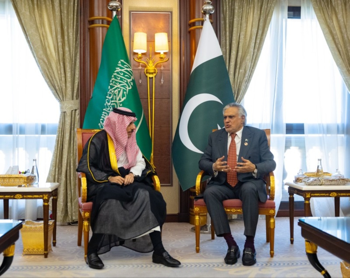 Saudi Foreign Minister Prince Faisal bin Farhan bin Abdullah met today in Riyadh with the Deputy Prime Minister and Foreign Minister of Pakistan, Ishaq Dar, on the sidelines of his visit to the Kingdom to participate in the Future Investment Initiative 2025 conference.