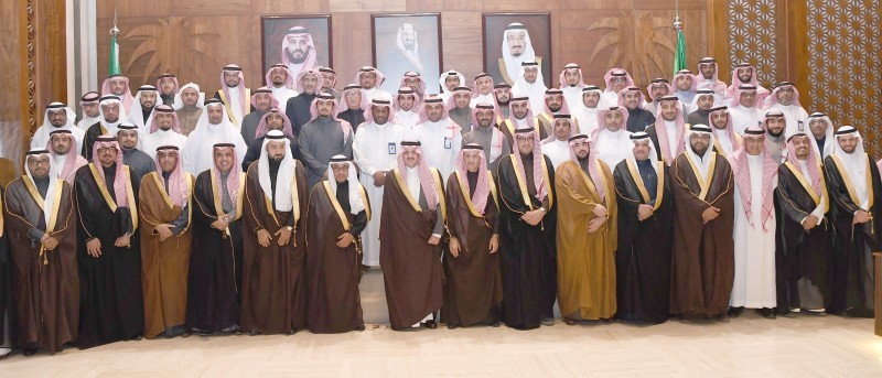 الأمير سعود بن نايف في صورة جماعية مع ضيوف «الإثنينية».