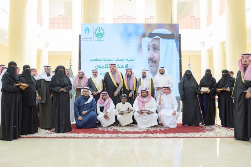 سلم أمير منطقة الباحة رئيس اللجنة التنفيذية للإسكان التنموي الأمير الدكتور حسام بن سعود بن عبدالعزيز، في ديوان الإمارة أمس (الثلاثاء)، دفعة جديدة من وحدات الإسكان التنموي لمستفيدي الجمعيات الخيرية بالمنطقة المؤمن من وزارة الإسكان.