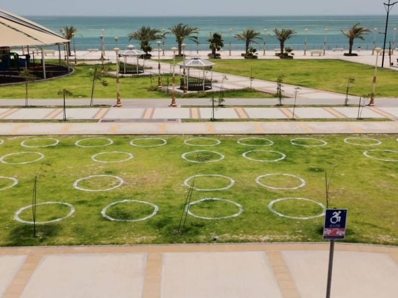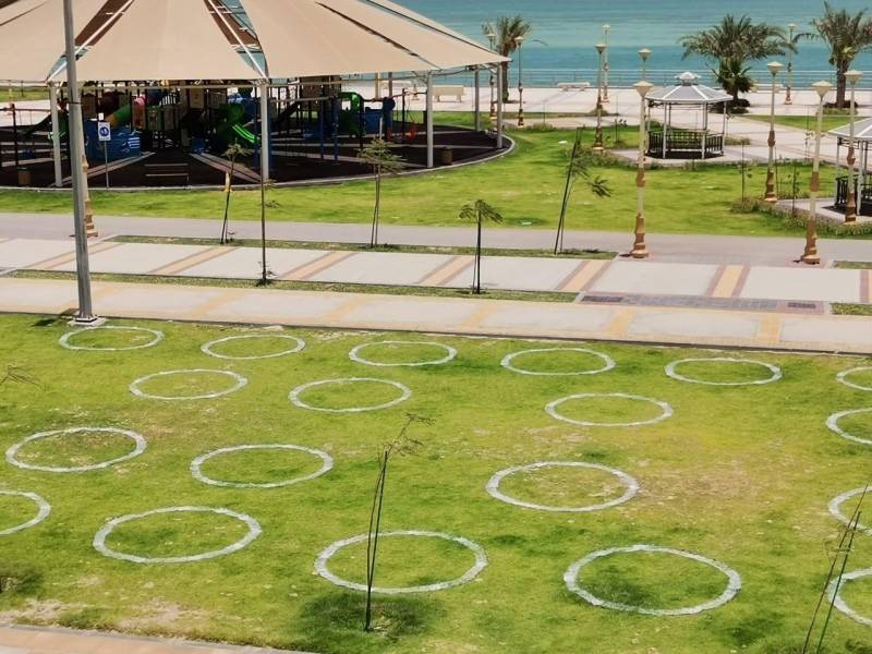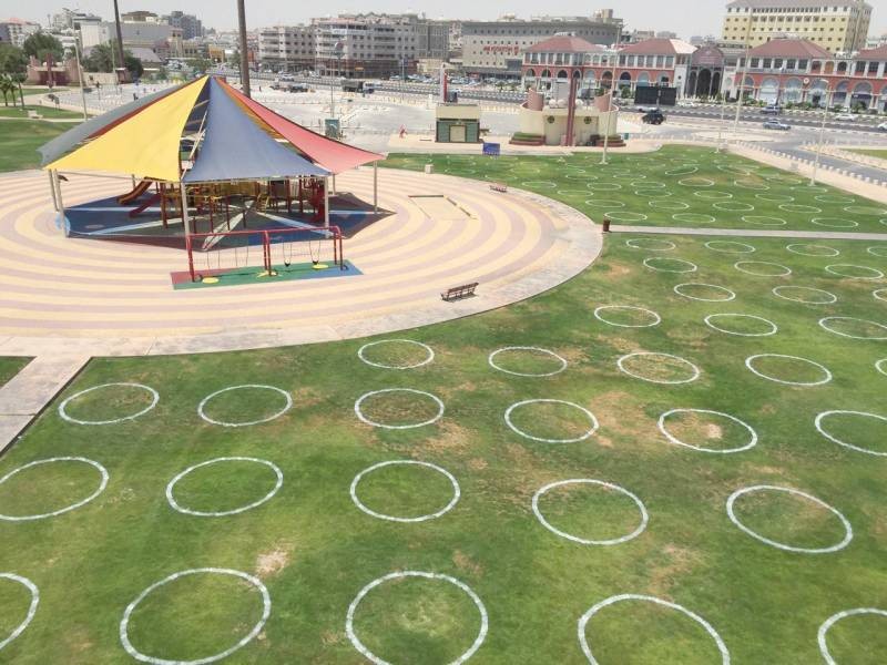 من جانب آخر، وضعت بلدية الخبر دوائر لجلوس المتنزهين في الواجهة البحرية والكورنيش لتطبيق معايير التباعد الجسدي، كما قامت بغسل وتعقيم العاب الأطفال في الحدائق العامة والمنتزهات حرصا على سلامة الأطفال.