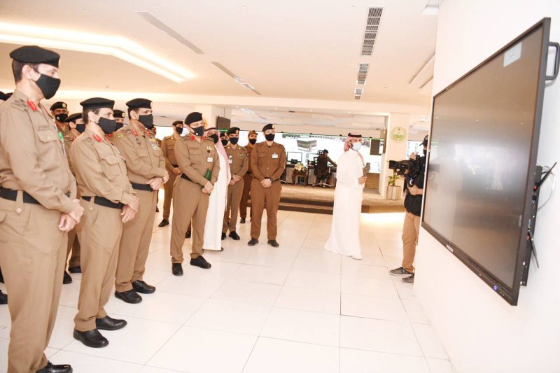 مدير الأمن العام خلال متابعته سير العمل في مركز القيادة والسيطرة بمشعر منى.