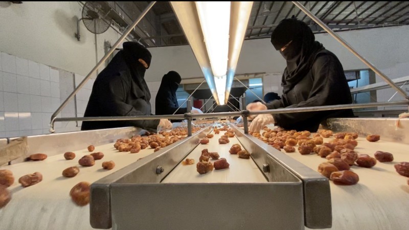 استبدل أحد مصانع التمور في الأحساء، موظفيه بطاقم نسائي كامل منذ 3 أعوام، لرغبة مالكه المساهمة في تمكين المرأة.