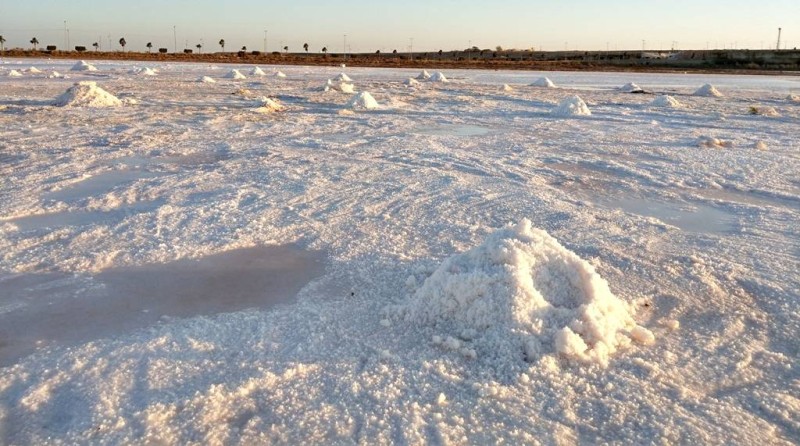يتم تجميع أكوام الملح وتركها تجف لأيام قبل تعبئتها للبيع. (تصوير: المحرر)