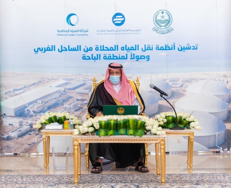 دشن أمير منطقة الباحة الأمير الدكتور حسام بن سعود، زيادة حصة منطقة الباحة من مياه التحلية لتبلغ 80 ألف متر مكعب، ورفع الطاقة الإنتاجية، من المصادر المحلية، وتعزيز ساعات الضخ في شبكات التوزيع.