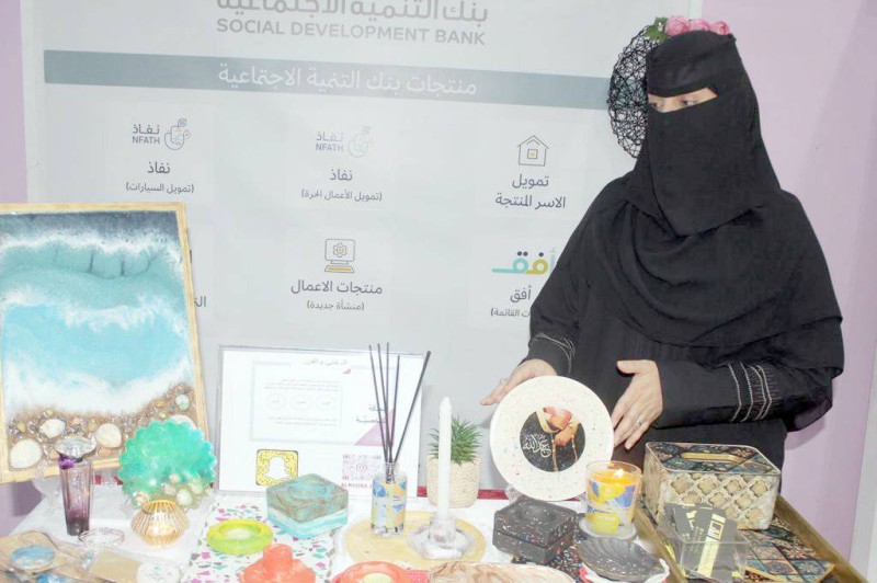 منى المطيري تستعرض فن الديكوباج في معرض بازار تبوك.