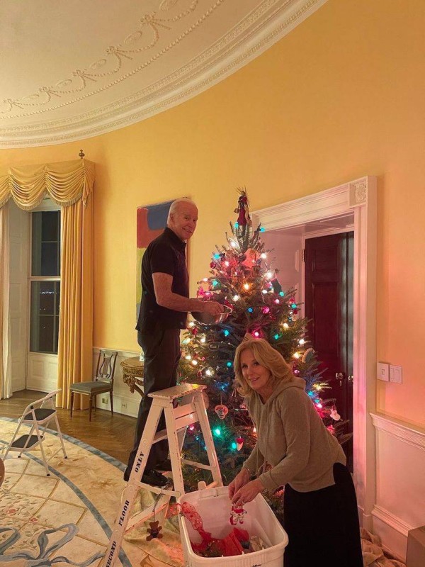 فيما اختار الرئيس الأمريكي جو بايدن الاحتفال بطريقة خاصة، وظهر مع زوجته جيل بايدن وهما يضعان اللمسات الأخيرة على شجرة عيد الميلاد، وزينة الكريسماس.