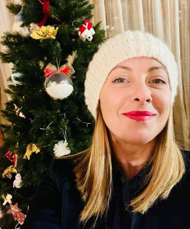 وفي روما، ظهرت رئيسة الوزراء الإيطالية جورجيا ميلوني أمام شجرة عيد الميلاد مزينة، في صورة معتمرة قبعة بيضاء، ينسدل تحتها شعرها الأشقر، مكتفية بتغريدة قصيرة: «أتمنى لكم ليلة عيد ميلاد سعيدة وسلمية».