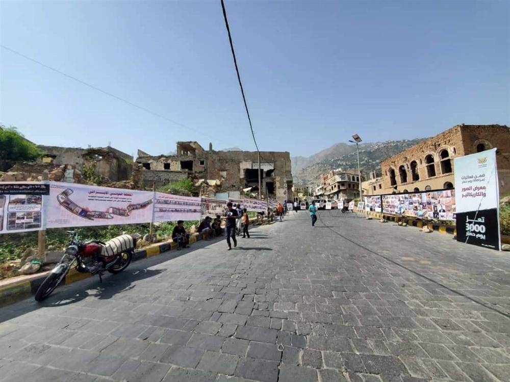 بالتزامن مع مرور 3000 يوم من الحصار على مدينة تعز اليمنية من قبل المليشيات الحوثية في أطول حصار على مر التاريخ، نفذ ناشطون في مدينة تعز معرض صور لإبراز الجرائم المرتكبة بحق المدنيين في المحافظة المحاصرة للعام التاسع تواليا.
