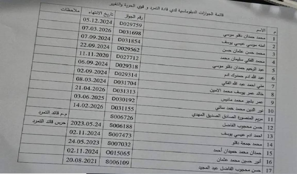 قائمة بأسماء من لديهم جوازات دبلوماسية