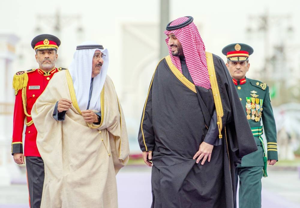 استقبل خادم الحرمين الشريفين الملك سلمان بن عبدالعزيز، بحضور ولي العهد رئيس مجلس الوزراء الأمير محمد بن سلمان بن عبدالعزيز، في قصر عرقة، اليوم، أمير دولة الكويت الشقيقة الشيخ مشعل الأحمد الجابر الصباح، الذي وصل الرياض، في زيارة للسعودية. وكان ولي العهد في مقدمة مستقبليه لدى وصوله مطار الملك خالد الدولي. ورحب خادم الحرمين، بأمير الكويت والوفد المرافق له، وأبدى الشيخ مشعل الصباح سعادته بلقاء خادم الحرمين الشريفين، وجرى خلال الاستقبال استعراض العلاقات الأخوية الوثيقة بين البلدين الشقيقين. ونيابة عن خادم الحرمين، قلد ولي العهد، أمير الكويت قلادة الملك عبدالعزيز تقديرًا له. وأقام ولي العهد مأدبة غداء تكريما له.