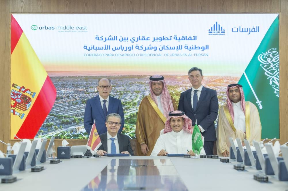 شهد وزير الشؤون البلدية والقروية والإسكان ماجد بن عبدالله الحقيل، اليوم، توقيع الشركة الوطنية للإسكان، اتفاقية مع شركة أورباس الشرق الأوسط العقارية التابعة لشركة أورباس الإسبانية، لإنشاء 589 وحدة سكنية بضاحية الفرسان، بقيمة تقارب مليار ريال، بهدف توفير خيارات سكنية مبتكرة ونموذجية، على مساحة تصل إلى 150 ألف متر مربع، بحضور سفير مملكة إسبانيا لدى المملكة العربية السعودية خورخي ايبيا.