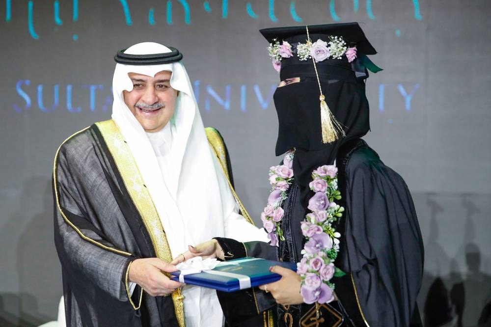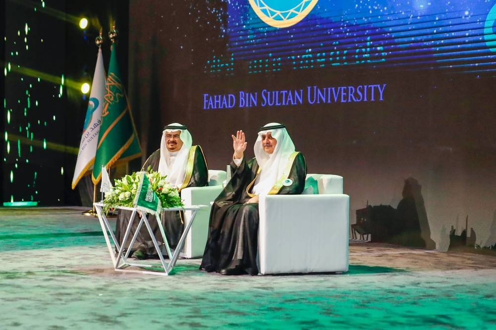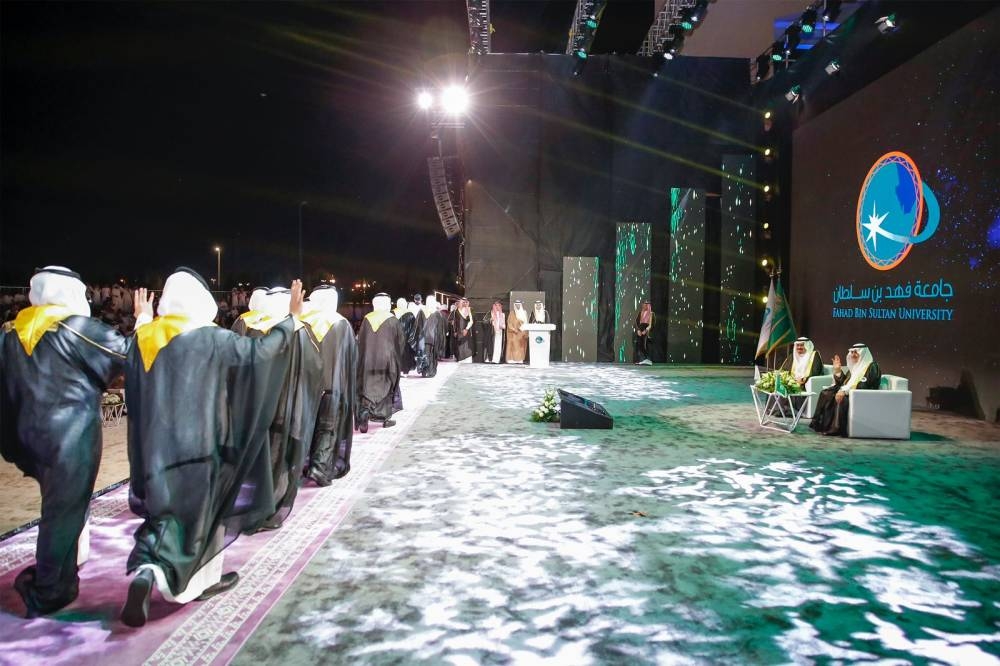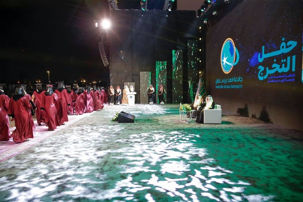 رعى أمير منطقة تبوك رئيس مجلس أمناء جامعة فهد بن سلطان الأمير فهد بن سلطان بن عبدالعزيز، بحضور نائب أمير منطقة تبوك الأمير خالد بن سعود بن عبدالله الفيصل بن عبدالعزيز، مساء أمس، حفل تخريج الدفعة الـ16 لحملة البكالوريوس، والدفعة الـ11 لحملة الماجستير، من طلاب وطالبات جامعة فهد بن سلطان البالغ عددهم أكثر من 400 خريج وخريجة، بمقر الجامعة.