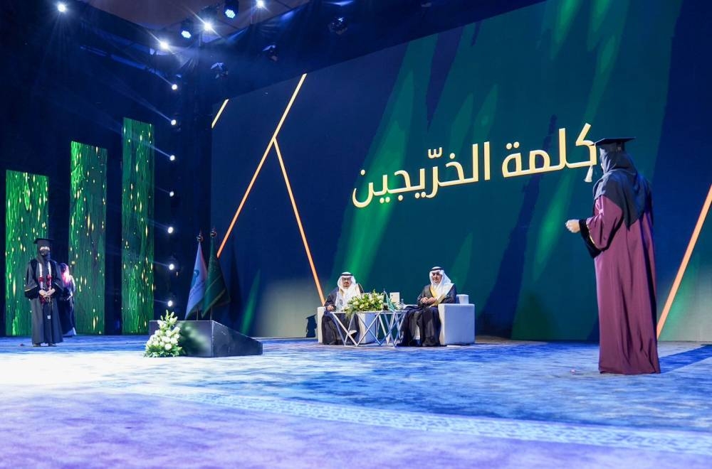 وفي ختام الحفل القى أمير تبوك كلمة أكد من خلالها أن «هذه الليالي ليالي الحصاد والتخرج هي أسعد الليالي لي في عملي هنا، وإن كان لي شيء أفتخر فيه وأسعد فيه فهو مثل هذه الليالي التي أحضرها لتخريج أبنائي وبناتي»، مقدماً الشكر للقائمين والداعمين لهذا الصرح العلمي الكبير وعلى رأسهم نائب رئيس مجلس الأمناء صبيح بن طاهر المصري الذي كان له الفضل بعد الله في ما وصلت اليه الجامعة من تميز، مثنياً على دور الرئيس التنفيذي لشركة نيوم المهندس نظمي النصر، وإسهامات شركة نيوم في ابتعاث خريجي وخريجات الجامعة لمختلف الدول.