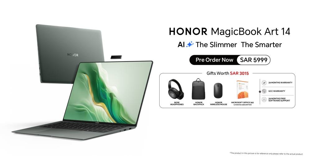 يتوفر HONOR MagicBook Art 14 للحجز المسبق باللون الأخضر الزمردي بسعر 5999 ريالا. عند الشراء، سيحصل العملاء على هدايا مجانية مع هذا الحجز بقيمة 3015 ريالا بما في ذلك سماعات Bose والماوس وحقيبة الظهر HONOR واشتراك لمدة 12 شهرًا في Microsoft Office 365، بالإضافة إلى الخدمات المجانية والتي تتضمن ضمانا لمدة 24 شهرا، ضمانا في دول مجلس التعاون ودعم البرامج مجاناً لمدة 24 شهرا.