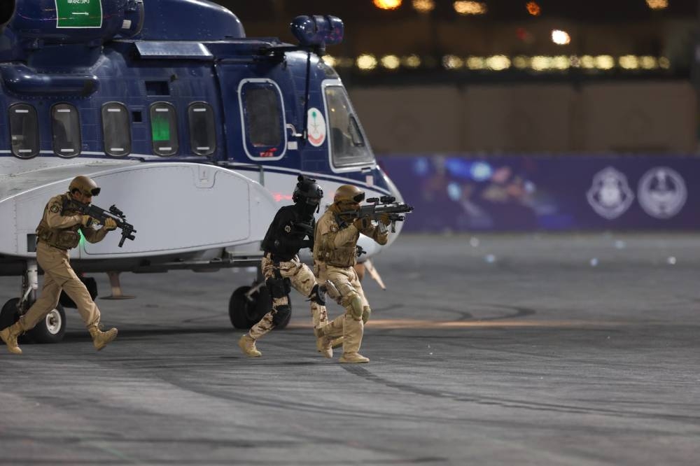 The security teams participating in the various Hajj activities presented a massive military display, showcasing their readiness to protect the Hajj by executing numerous advanced military demonstrations, including security aviation. They chanted national slogans at the top of their voices and with determination, declaring that they are ready to protect their homeland, and affirming that the training they received in preparation for the Hajj will contribute to providing the highest levels of protection and safety for the pilgrims.
