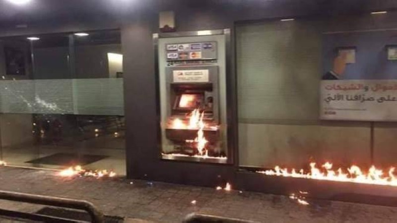 أشعل مجهولون فجر اليوم (الأحد) النار في فرع مصرف «الاعتماد اللبناني»، ومحاولة خلع الصراف الآلي من أمام الفرع، وتكسير زجاج واجهته الأمامية.