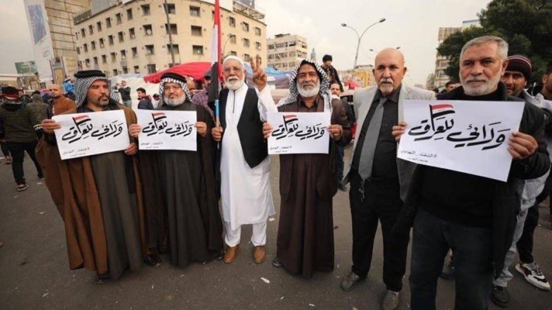 علي ياسين الدراجي يمشي أو «عمر المختار» العراقي يسير بين المحتجين حاملا علم بلاده، ويتقدم المتظاهرين فيتجمع حوله الشباب لالتقاط الصور التذكارية ثم يهتفون بصوت عال ويطلبون سماع مقولته الشهيرة «ننتصر أو نموت».