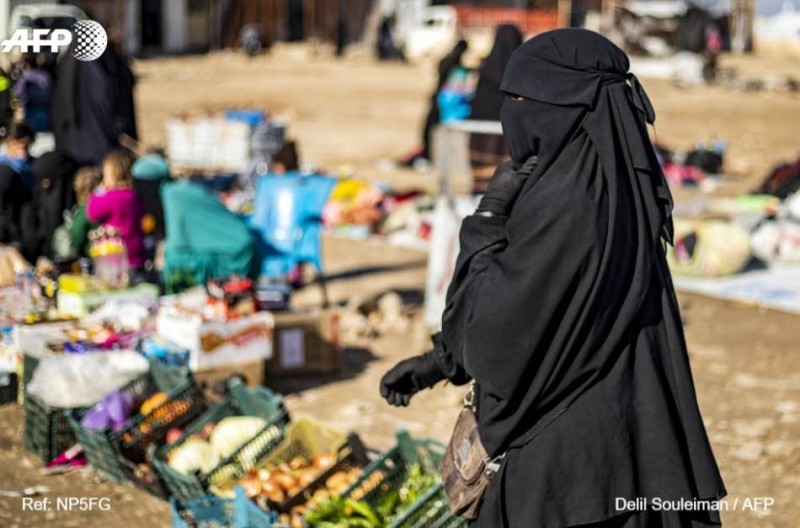 داعشيات في مخيم الهول شمال سورية. (أ. ف. ب)