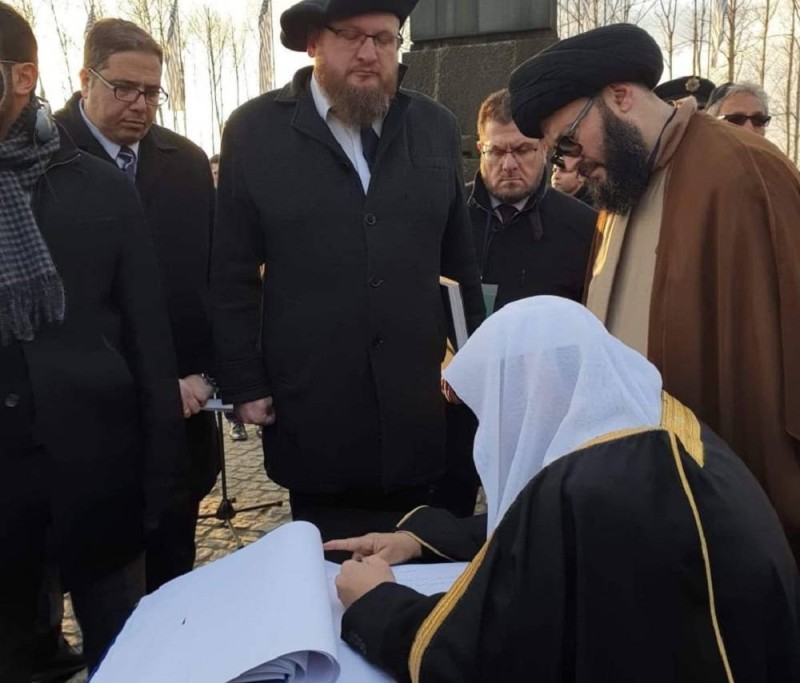 وأضاف الحسيني: «في الوقت الذي نشجب وندين ونستنکر الجرائم الفظيعة التي ترتکب بحق المسلمين في بورما ونطالب بأن تتم ملاحقة المتسببين فيها، فإننا خلال زيارتنا للمعرض الدائم لتوثيق الجرائم النازية الهولوکوست في معتقل أوشفيتز، لا نرى أمامنا سوى جريمة مرتکبة بحق الإنسانية جمعاء، ضد أناس خلقهم الله ووهبهم الأرواح ليعيشوا ما قدر لهم، وإن قتلهم لمجرد کونهم أتباع الديانة اليهودية جريمة بالمعنى الحرفي للکلمة».