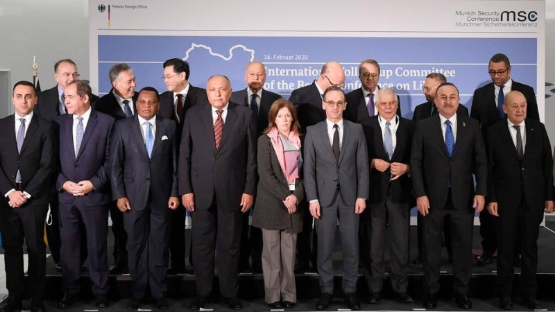 المشاركون في مؤتمر ميونخ حول ليبيا أمس.(وكالات)