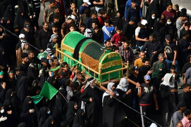 وفي مدينة الناصرية في جنوب العراق ذات الغالبية الشيعية، أحيا المئات ذكرى «استشهاد الكاظم» حاملين نعشاً رمزياً.