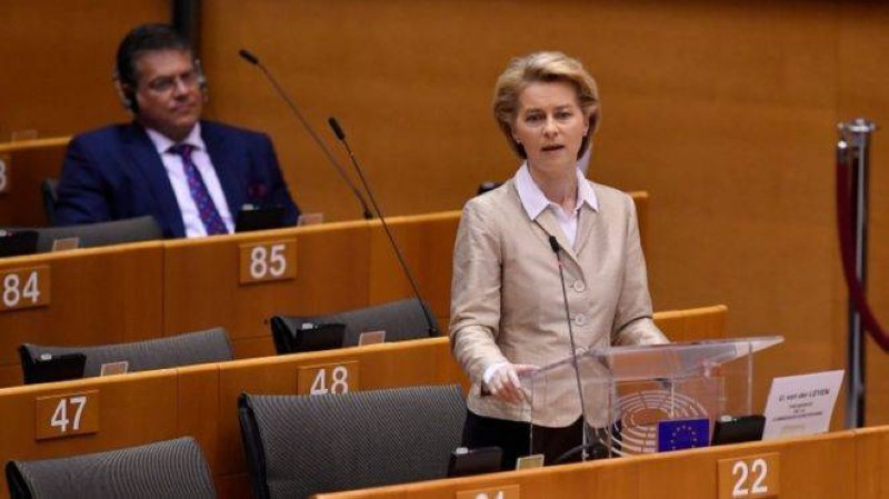 رئيسة المفوضية الأوروبية أورسولا فون دير لاين خلال كلمة لها بالبرلمان الأوروبي.