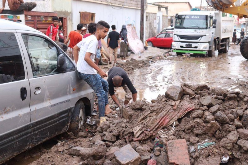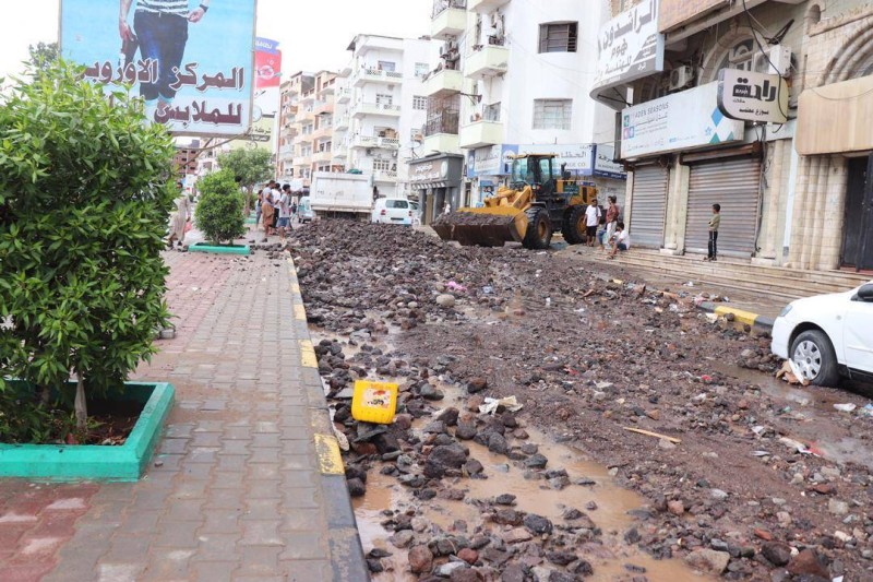 وشرعت فرق البرنامج في إنقاذ المواطنين اليمنيين منذ وقت مبكر إلى ساعات فجر اليوم، كما شقت فرق العمل طريق العقبة الرابط بين مديرية كريتر ومديرية المعلا، بعد أن تسببت السيول في انقطاع الطريق.