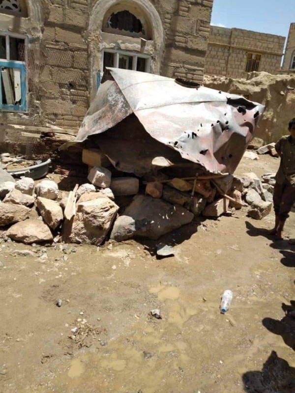 آثار الدمار الذي لحق بأنابيب المياه جراء القصف الحوثي على قرية الصومعة بمحافظة البيضاء. (إعلام المقاومة)