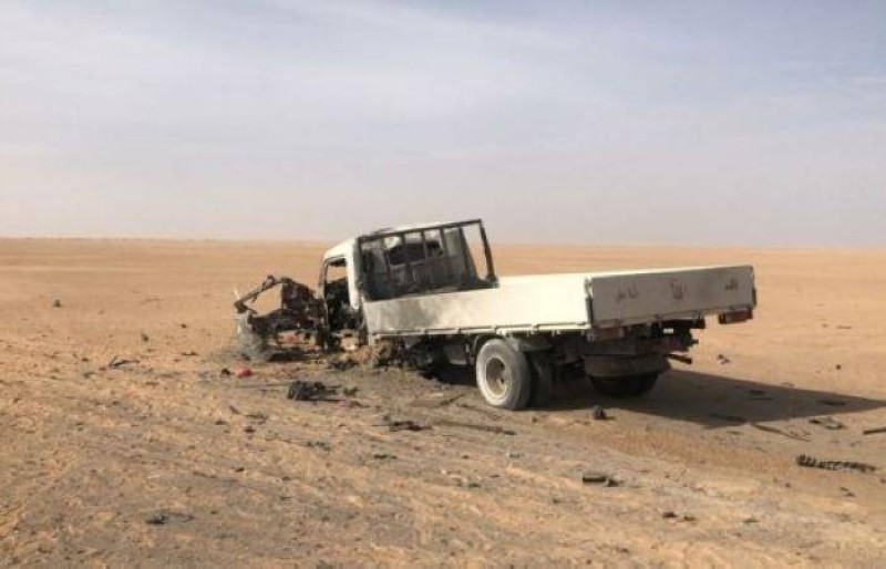 سيارة مدنية دمرتها المليشيا بالألغام وقتلت سائقها في الجوف. (متداولة)