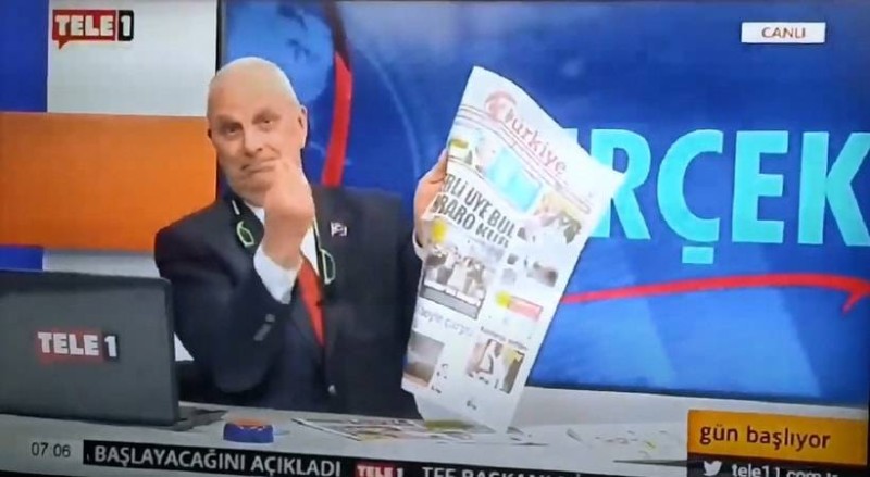 وخلال قراءته لعناوين الصحف الداعمة للسلطة الحاكمة أعطى أتاكلي إيماءات وإشارات بيده تعني «جميل جدا»، بينما أبدى أتاكلي تعبيرات وجه تهكمية أثناء تناوله للصحف المعارضة كجمهوريت وسوزجو ويني شاغ وكوركوسوز.