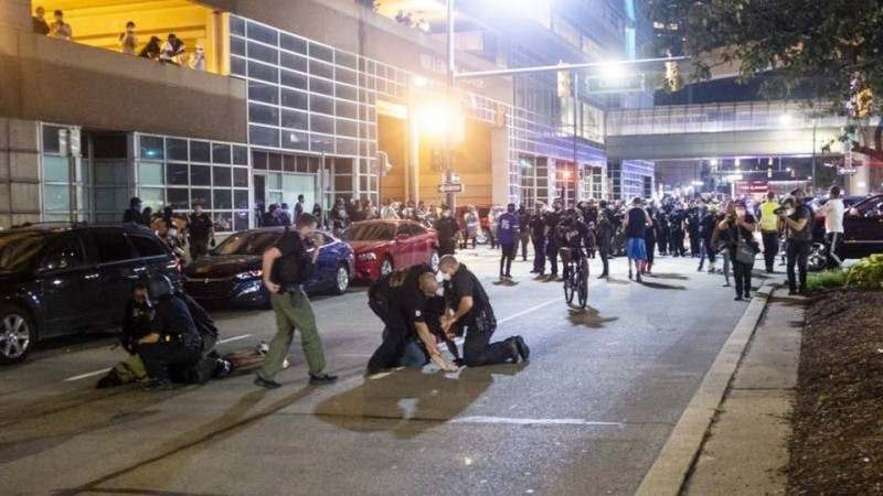 فيما أكدت وسائل إعلام أمريكية انطلاق مظاهرات في واشنطن ونيويورك ومنيابوليس، اعتبر الرئيس دونالد ترمب، أمس (السبت)، أن أعمال العنف في الولايات منظمة وليس لها علاقة بمقتل الأمريكي من أصول أفريقية جورج فلويد خنقا على يد ضابط الشرطة ديريك تشوفين أمس الأول. وكتب في تغريدة على تويتر: «هذه مجموعة منظمة ولا علاقة لها بجورج فلويد»، لكنه لم يوجه أصابع الاتهام إلى جهة بعينها.