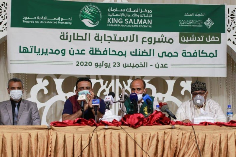 دشن مركز الملك سلمان للإغاثة والأعمال الإنسانية أمس (الخميس)، مشروع الاستجابة الطارئة لمكافحة حمى الضنك في محافظة عدن، ويستهدف المشروع مديريات عدن الثمانية على مدى 5 أشهر، و يستفيد منه 861.719 فرداً.